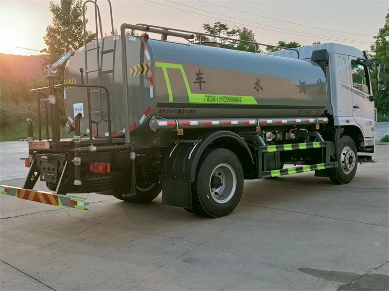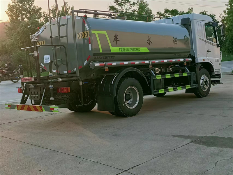 東風華神12噸灑水車產品標配前噴(鴨嘴)、后沖、后灑、側噴、后置式工作 平臺,平臺上配置綠化水炮(可 360°旋轉,既可以調成柱狀,也可 以調成霧狀,更可以調成直沖狀、大雨、中雨、小雨、毛毛雨),配 備優(yōu)質大功率專用灑水泵(可自吸自排,可從河里或池塘抽水到罐體), 取力器,雜物過濾網,消防接口,自流球閥系統、取力器、球閥、濾網 均為國家標準產品,主管道加粗,法蘭墊、法蘭盤加厚,大通徑球閥。 整體具備性能優(yōu)良安全可靠、效率高、流量大、維修方便等特點。