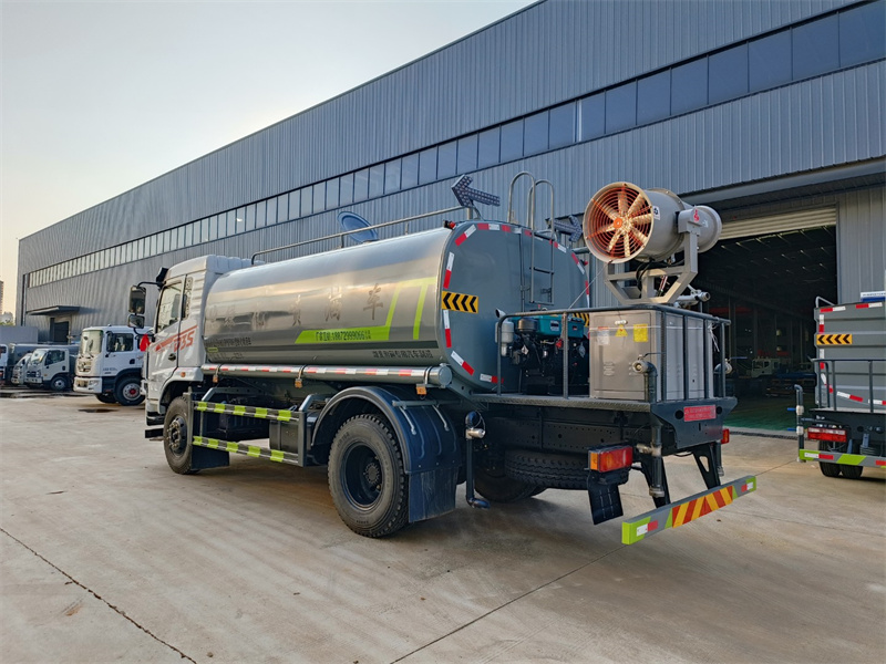 東風(fēng)12噸霧炮灑水車產(chǎn)品標(biāo)配前噴(鴨嘴)、后沖、后灑、側(cè)噴、后置式工作 平臺,平臺上配置綠化水炮(可 360°旋轉(zhuǎn),既可以調(diào)成柱狀,也可 以調(diào)成霧狀,更可以調(diào)成直沖狀、大雨、中雨、小雨、毛毛雨),配 備優(yōu)質(zhì)大功率專用灑水泵(可自吸自排,可從河里或池塘抽水到罐體), 取力器,雜物過濾網(wǎng),消防接口,自流球閥系統(tǒng)、取力器、球閥、濾網(wǎng) 均為國家標(biāo)準(zhǔn)產(chǎn)品,主管道加粗,法蘭墊、法蘭盤加厚,大通徑球閥。 整體具備性能優(yōu)良安全可靠、效率高、流量大、維修方便等特點(diǎn)