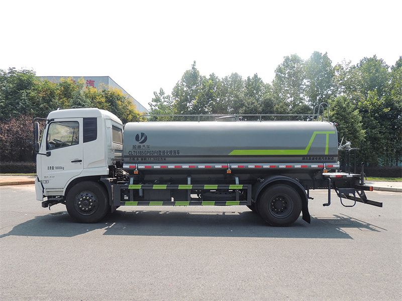 東風(fēng)天錦15噸灑水車產(chǎn)品標(biāo)配前噴(鴨嘴)、后沖、后灑、側(cè)噴、后置式工作 平臺(tái),平臺(tái)上配置綠化水炮(可 360°旋轉(zhuǎn),既可以調(diào)成柱狀,也可 以調(diào)成霧狀,更可以調(diào)成直沖狀、大雨、中雨、小雨、毛毛雨),配 備優(yōu)質(zhì)大功率專用灑水泵(可自吸自排,可從河里或池塘抽水到罐體), 取力器,雜物過濾網(wǎng),消防接口,自流球閥系統(tǒng)、取力器、球閥、濾網(wǎng) 均為國(guó)家標(biāo)準(zhǔn)產(chǎn)品,主管道加粗,法蘭墊、法蘭盤加厚,大通徑球閥。 整體具備性能優(yōu)良安全可靠、效率高、流量大、維修方便等特點(diǎn)