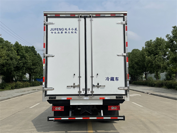 奧鈴排半5米2冷藏車廂體配置為:斷橋隔溫工藝,整體結(jié)構(gòu)框架,內(nèi)外面料為3mm新款啞光玻璃鋼夾保溫層真空復(fù)合而成,廂體厚度為8cm,最新款鋁合金包邊型材,型材局部厚度為4mm(鋼制鉚釘加固),廂體內(nèi)部采用2個LED照明燈及廂體示寬燈,后門框不銹鋼材質(zhì),門框密封條為三元乙丙橡膠材質(zhì),加厚型不銹鋼合頁及鎖件;副梁為Q700車用大梁鋼,15mm厚大梁墊皮,加裝防撞膠塊,不銹鋼門鎖件,配后雙開門,副駕駛一側(cè)居中靠前開單側(cè)門一個,帶2個排水孔。